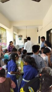 On 24 April 2025, from 9:00 am to 12:30 pm, an outreach activity was organized at Phanaswadi Zilha Parishad School, located in the forest area of Kharghar (Chapewadi), Navi Mumbai. During the program, school bags, water bottles and snacks were distributed to children studying at the school to support their basic educational needs. Along with this, a free eye check-up camp was also conducted for the students of the Primary Zilha Parishad School at Phanaswadi, Nerul, with the aim of identifying vision-related problems at an early stage and promoting better health and learning among the children.